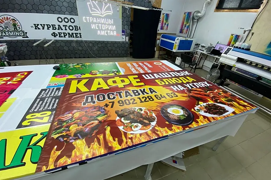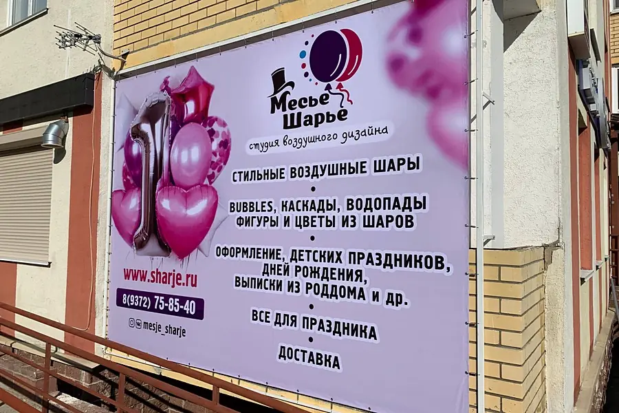 Баннеры или баннерная растяжка – наиболее распространённый элемент наружной рекламы. Растяжки и плакаты на тканевой основе используются в промо-акциях, как временные вывески и сезонные спецпредложения. Полноцветная печать при изготовлении баннеров позволяет максимально реалистично передать цвета и оттенки, создавая привлекательный вид, а прочные всепогодные ткани сохраняют текстуру и качество изображения на месяцы и годы.