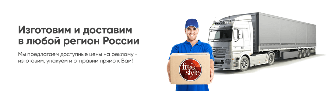 У нас налажена работа с транспортными компаниями, мы предлагаем доставку рекламной продукции до двери или вашего склада/терминала не только по территории Ульяновска и Ульяновской области, но и в большинство городов и регионов на территории России.Имея собственное производство и собственный парк оборудования для изготовления наружной рекламы мы предлагаем одни из самых лучших цен на территории России.