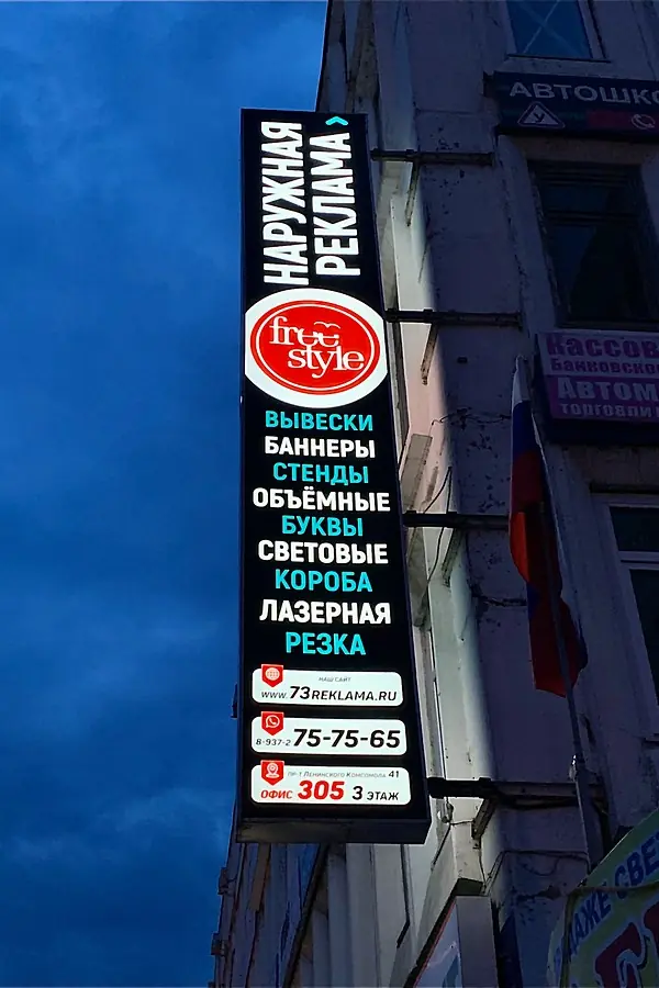 Посмотрите наши цены на изготовление или монтаж в Ульяновске нужного Вам вида наружной рекламы в нашем агентстве Фристайл.